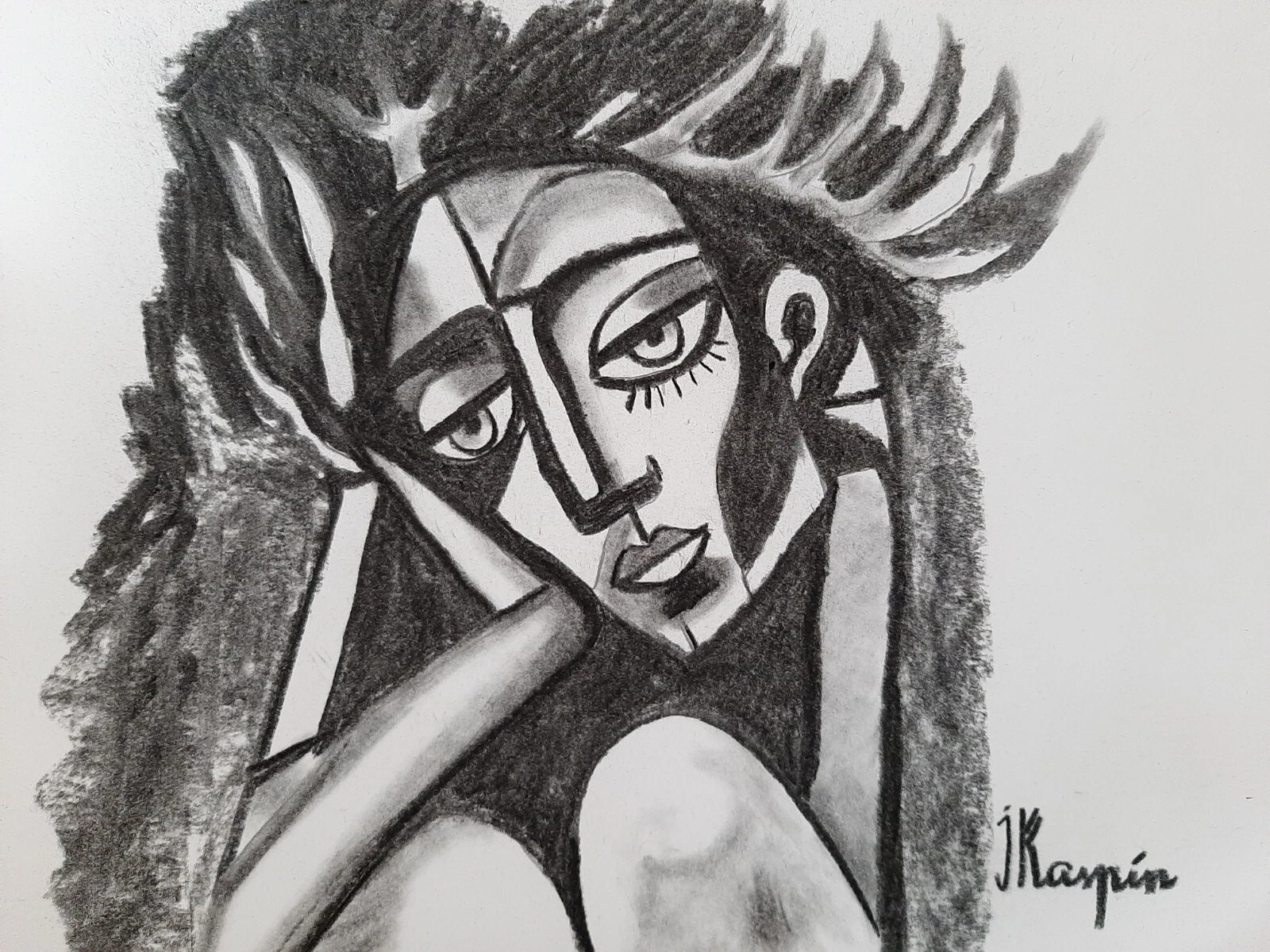 In a world saturated with noise and imagery, Kaspin Jacques’s Behind Unsaid Words emerges as a suspended breath—a slow, deliberate exhale in the midst of chaos. This charcoal drawing, both raw and delicate, draws from cubist and abstract traditions to explore the intimate landscapes of silence, longing, and dream.