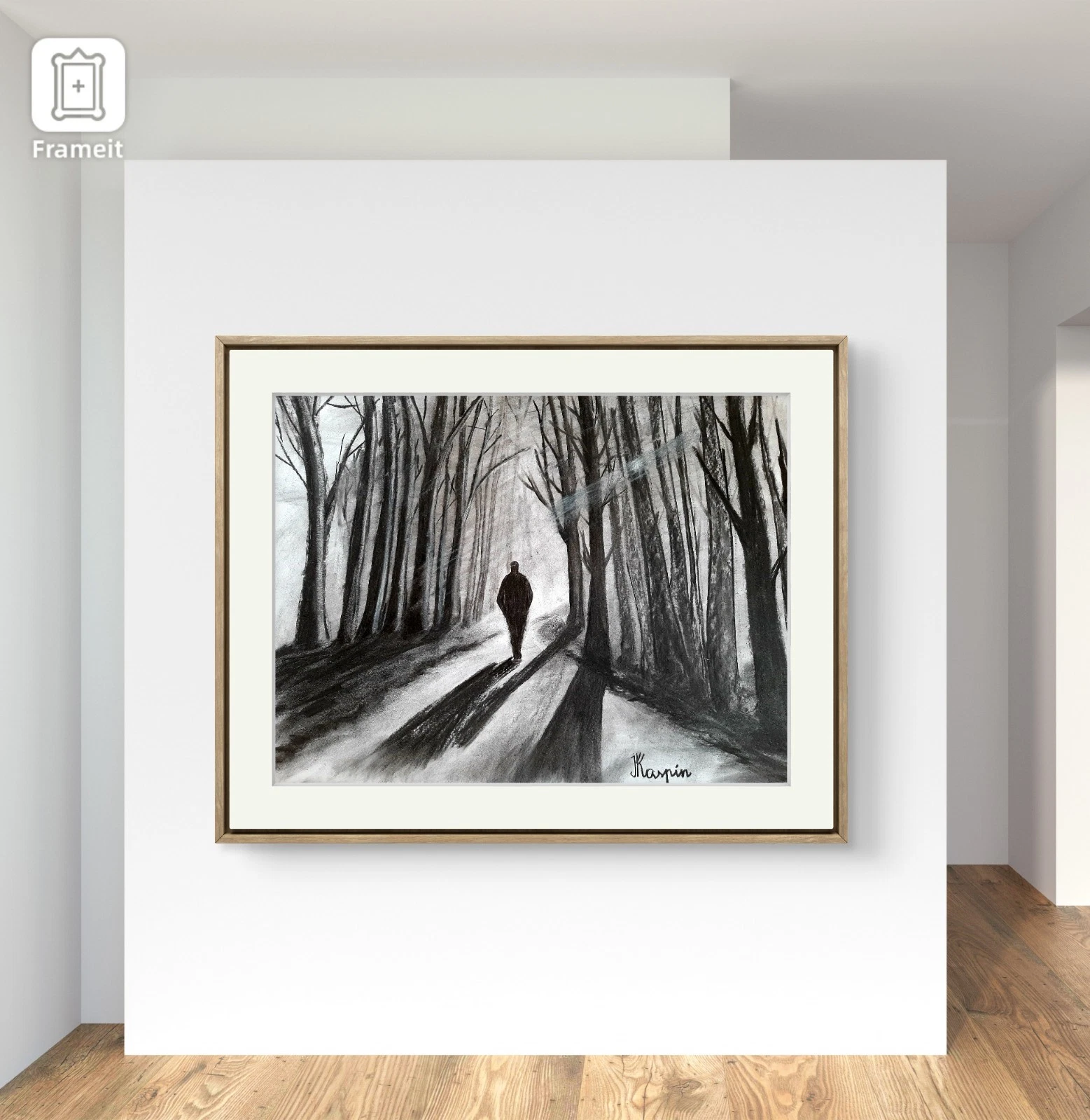 Sous la simplicité apparente de la composition se cache une tension d’une rare intensité, presque métaphysique. La lumière n’y révèle rien : elle questionne, elle éclaire de l’intérieur. Elle semble émaner du sujet lui-même, comme si chaque pas sur ce chemin n’était qu’un mouvement vers la clarté intime, une ascension vers soi.