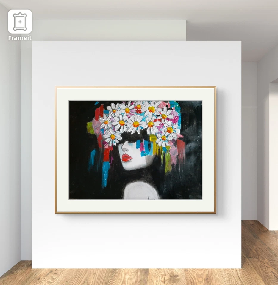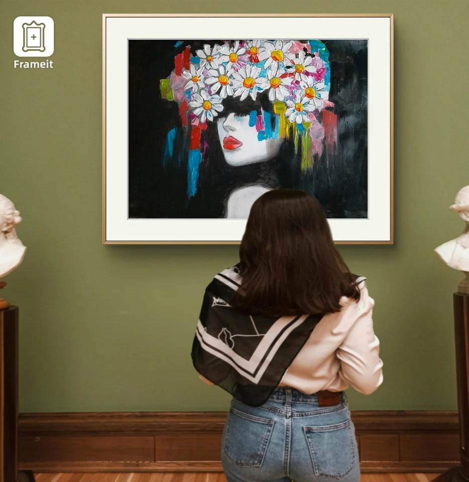 Art Enthusiast Review – by Elise I stumbled upon The Daisies and felt as though I’d uncovered a memory I didn’t know I had. The woman’s face, half-hidden in shadow, carries a quiet intimacy. The flowers aren’t just decoration—they pulse with life, emotion, and something deeply personal. This piece doesn’t shout. It breathes. It invites you to slow down, to listen. I felt like I was being wrapped in a breeze, in a moment of stillness. It reminded me of how art can whisper and still be unforgettable.