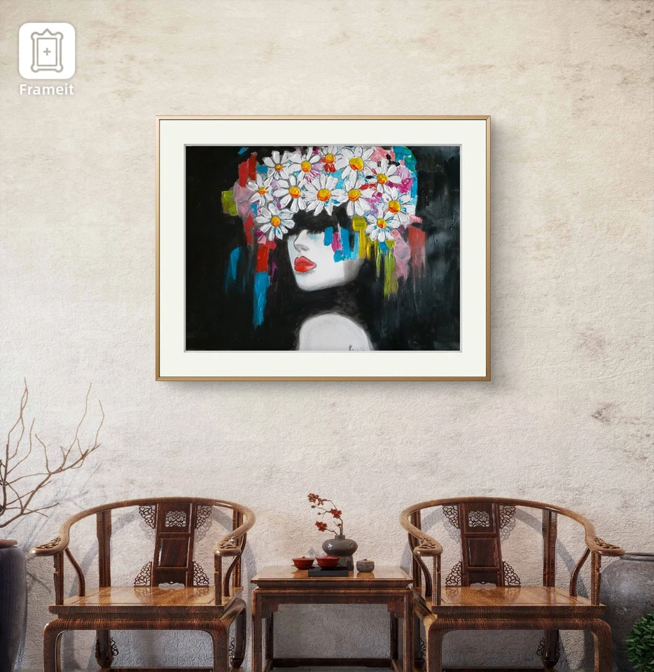 🎨 Art Enthusiast Review – by Amir There’s something hauntingly beautiful about this piece. The woman is both present and fading, like a dream you’re trying to hold onto. The flowers are wild, unapologetic, and they seem to carry her spirit. I kept thinking about the wind, the mountains, the quiet. It’s a painting that doesn’t just show you something—it takes you somewhere.